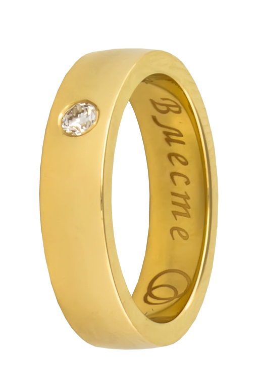 Золотое обручальное кольцо из желтого золота с бриллиантом. И с гравировкой на внутренней стороне "Вместе навсегда" - это клятва любви и верности.