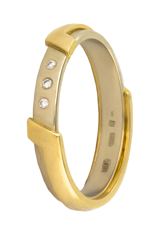 Золотое обручальное кольцо с бриллиантами. Каждая история любви неповторима и обручальное кольцо, как символ любви,должно это отображать. Такое обручальное кольцо сделает нужный акцент на Вашей индивидуальности и будет служить Вам многие годы.